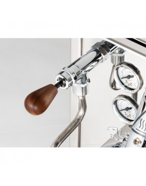Deze espresso-koffieautomaat is innovatief en professioneel, geschikt voor huishoudelijk gebruik en heeft de naam DUETTO omdat het zowel afzonderlijk als met een dubbeleboiler-systeem zowel stoom- als koffieafgifte kan regelen. Hij kan werken met een watertank of kan direct op het waternet worden aangesloten met een automatische afvoerpijp. Het is uitgerust met een E61-groep, een professionele en geruisloze pomp en een thermoregeling beheerd door een PID met een elegant blauw verlicht display.